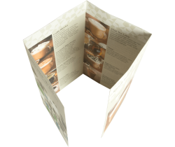 Folders laten drukken en afwerken met een driedubbele vouw tot een A4 formaat. Deze folders worden ook wel vierluik folders genoemd en bestaan uiteindelijk uit 8 pagina's met een gesloten luikvouw. De folders worden dubbelzijdig in full colour gedrukt op 250 grams gesatineerd papier. Gesatineerd papier heeft een mooie glanzende uitstraling waardoor afbeeldingen er krachtig uitkomen.