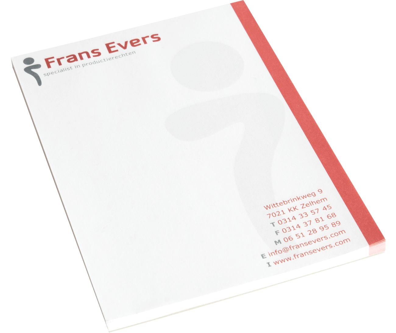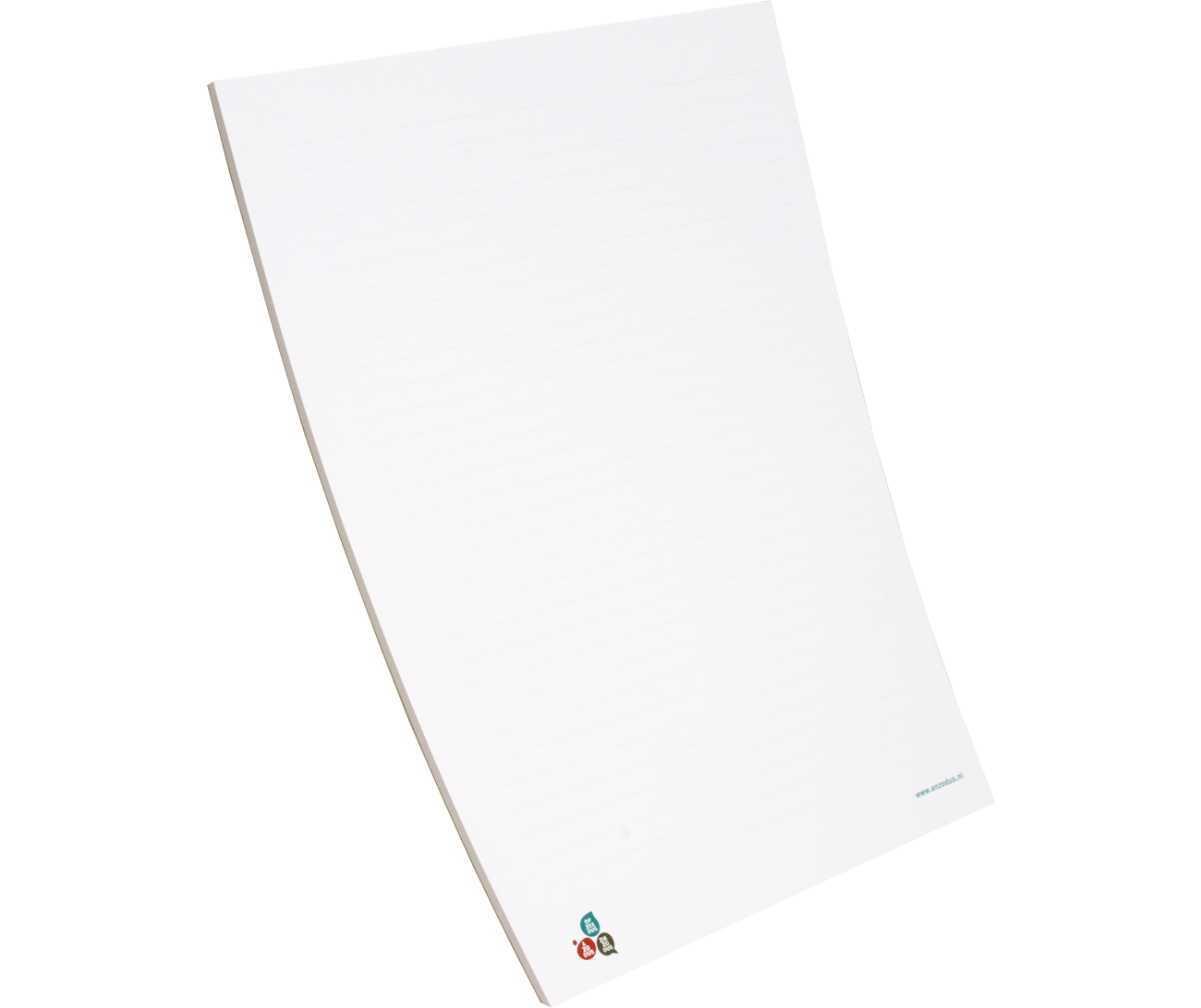 De schrijfblokken worden aan de kop gelijmd inclusief een stevig grijsbord karton en afgewerkt met of zonder omslag. Voor de schrijfvellen kun je kiezen voor 25, 50 of 100 vellen per blok. Deze schrijfvellen hebben dezelfde bedrukking en worden enkelzijdig in full colour gedrukt op 80 grams offset (hoogwit) papier. Kies je voor schrijfblokken met omslag? Dan kun je ook voor de omslag een bestand aanleveren. De omslag wordt gedrukt op 250 grams gesatineerd mc (glanzend) papier en afgewerkt met zijdeglans lak.