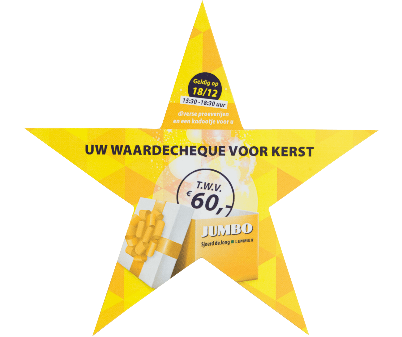 Deze schitterende ster flyers zijn te bestellen in 2 formaten. De kleine ster heeft een formaat van 100 x 95 mm en de grote ster 300 x 285 mm. De flyers worden enkelzijdig of dubbelzijdig in full colour gedrukt en kunnen worden afgewerkt met enkelzijdig of dubbelzijdig mat- of glans laminaat voor een stevige en luxe uitstraling. Leverbaar in 9 verschillende papiersoorten.