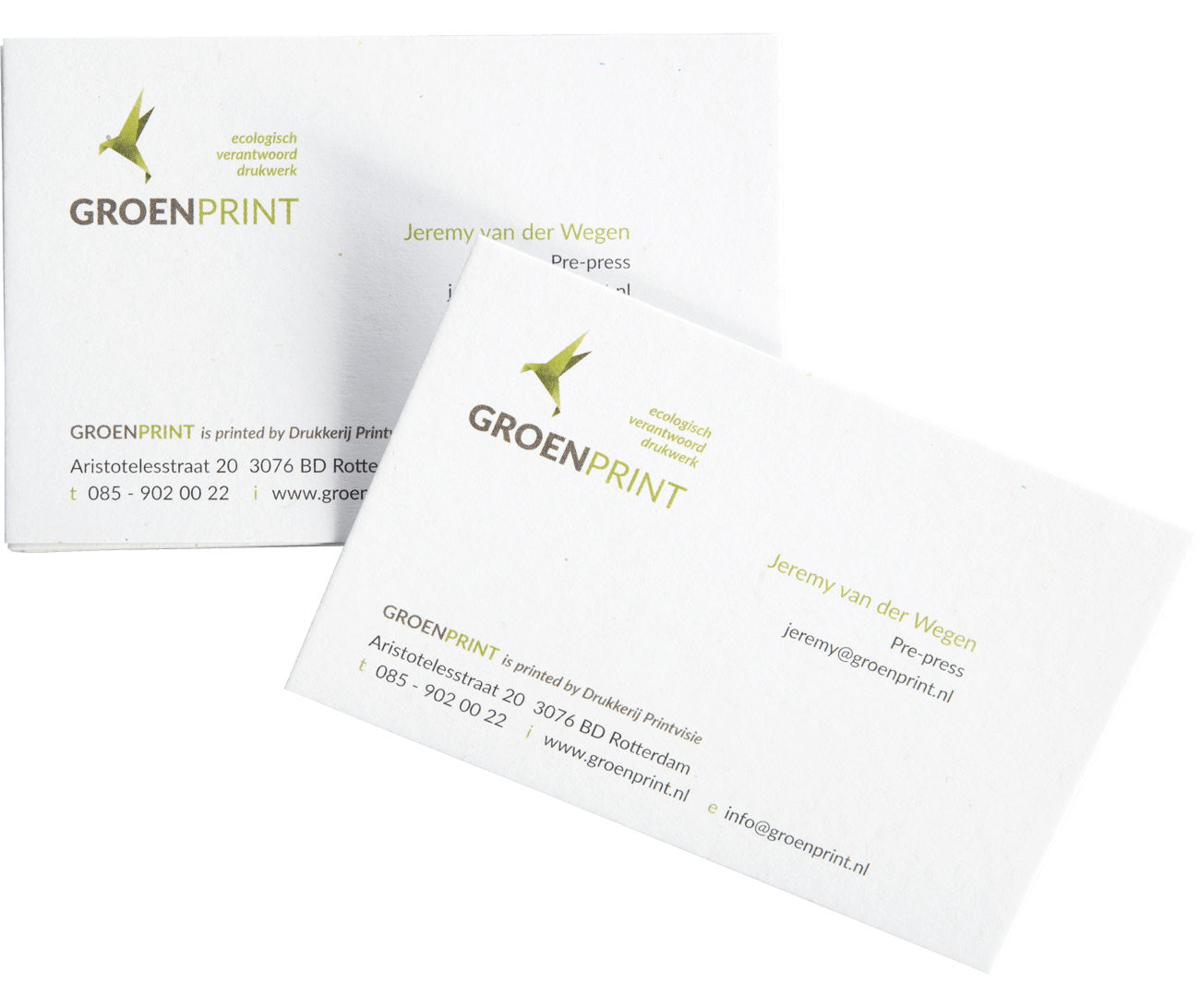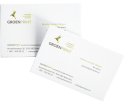 Visitekaartjes laten drukken met een luxe spot-uv afwerking. Spot-uv lak is een hoogglanzende lak die op bepaalde delen van het visitekaartje geplaatst kan worden. Je kan zelf aangeven waar de spot-uv lak komt. Hierdoor krijgen de delen met lak een verhoogde attentiewaarde. Als extra optie kan je ervoor kiezen om de visitekaartjes te voorzien van ronde hoeken.