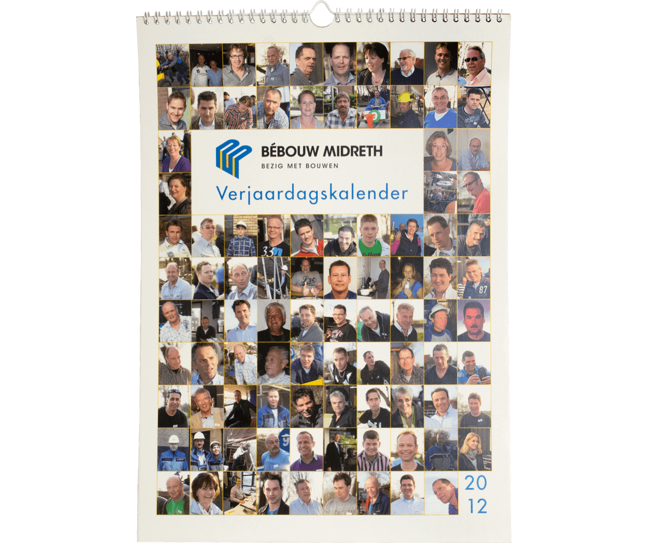Wandkalenders, ook wel hangkalenders, worden kant en klaar geleverd met een luxe spiraalbinding en ophangoog. Door het ophangoog kunnen de wandkalenders netjes aan de muur worden opgehangen. Voor extra stevigheid kunnen de kalenders worden afgewerkt met een grijsbord aan de achterzijde. Leverbaar in 4 formaten en verschillende papiersoorten.
